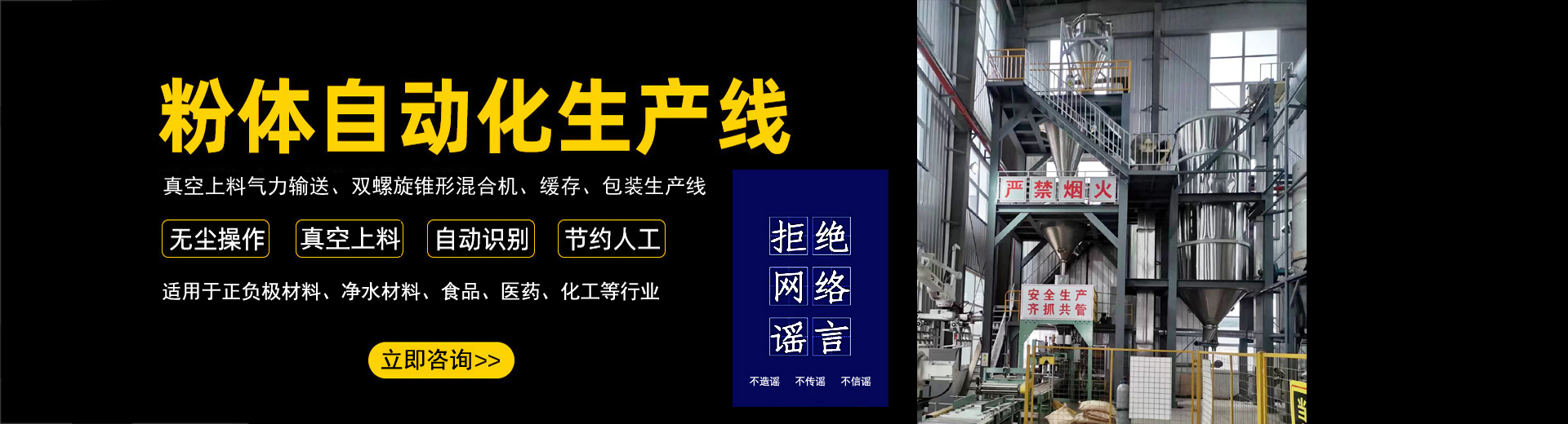 公司在制造混合設(shè)備和各類機(jī)械氣力輸送生產(chǎn)線的經(jīng)驗(yàn)沉積下,自主開(kāi)發(fā)了全自動(dòng)化生產(chǎn)線。實(shí)現(xiàn)了自動(dòng)化拆垛、自動(dòng)化輸送、自動(dòng)化配料、自動(dòng)化秤重混合、自動(dòng)化篩分、自動(dòng)化包裝、自動(dòng)化碼垛一系列全自動(dòng)化生產(chǎn)線...